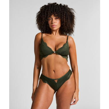 Αυτό το bralette είναι η ιδανική επιλογή για ελαφριά στήριξη με μέγιστο στυλ κατασκευασμένο εξ ολοκλήρου από δαντέλα. Τα τριγωνικά cups αναδεικνύουν το φυσικό σας σχήμα ενώ το κλείσιμο μπροστά προσθέτει μια μοντέρνα πινελιά και μια νότα πρακτικότητας.