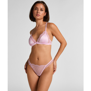 Ένα θηλυκό ροζ bralette με λεπτή floral δαντέλα, σχεδιασμένο για φυσική άνεση και κομψή εμφάνιση. Χωρίς μπανέλα ή έντονη ενίσχυση, προσφέρει μια ελαφριά, καθημερινή εφαρμογή που αναδεικνύει διακριτικά τη σιλουέτα.