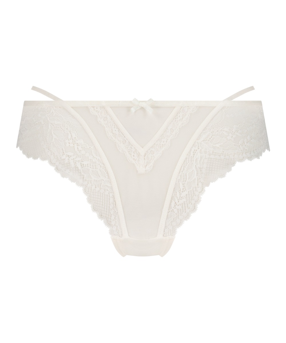 Μπραζίλιαν με πραγματικά περίτεχνο σχέδιο από δαντέλα και cut out λεπτομέρειες στο πλάι. Συνδύασέ το με το αγαπημένο σου σουτιέν και νιώσε υπέροχα! Η δαντέλα είναι κατασκευασμένη κατά 50-59% ανακυκλωμένο πολυαμίδιο (νάιλον).