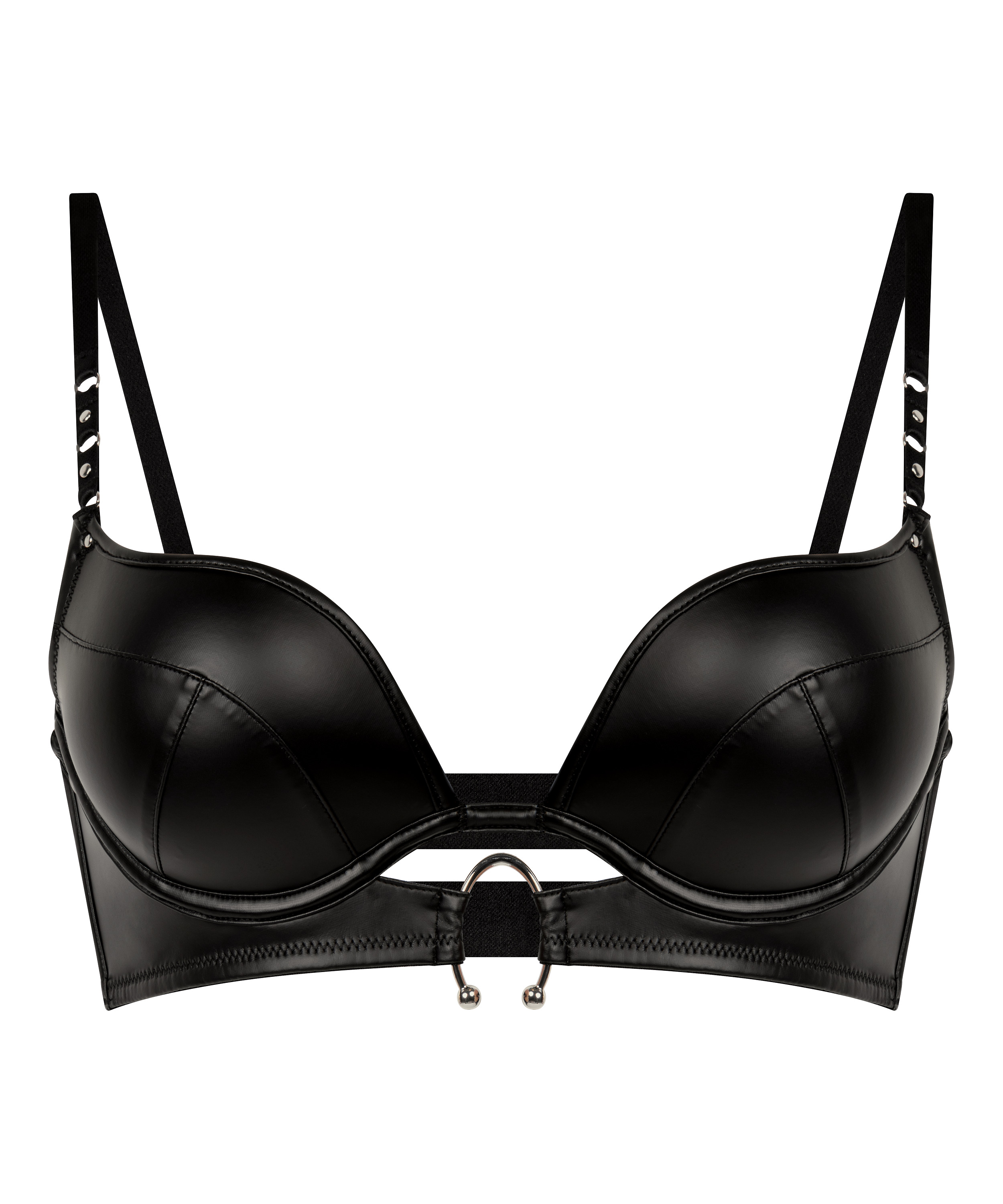 Aυτό το σουτιέν με ενίσχυση έχει βαθύ ντεκολτέ. είναι καλυμμένο με συνθετικό δέρμα για μια κομψή. εντυπωσιακή εμφάνιση. Συνδυάστε το με το ασορτί σλιπ για μια ολοκληρωμένη εμφάνιση.