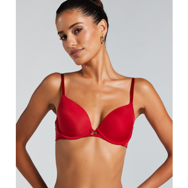Νιώστε άνετα με αυτό το σουτιέν! Έχει ένα πολύ κολακευτικό σχέδιο με V-cut και ρυθμιζόμενες τιράντες για να σας ταιριάζει τέλεια. Ολοκληρώνεται με ένα μικρό. κομψό φιόγκο ανάμεσα στα cups. Συνδυάστε το με εσώρουχα από τη συλλογή!