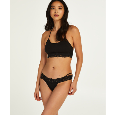 Στρινγκ με V κόψιμο και δαντέλα. Διαθέτει λεπτομέρειες από straps. Συνδύασέ το με το αγαπημένο σου σουτιέν για ένα τέλειο lingerie set!